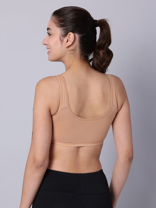 Pack of 3 Double Layered Multicolor Racerback Bra. Non Padded, Non Wired